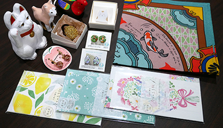 和紙のお手紙セットや工芸品、県内作家による個性あふれる手作りアクセサリーを販売しています。
