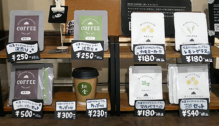 松倉オリジナルのコーヒーやハーブティー、ペットボトルなど、気軽に楽しめるドリンクもご用意しています。